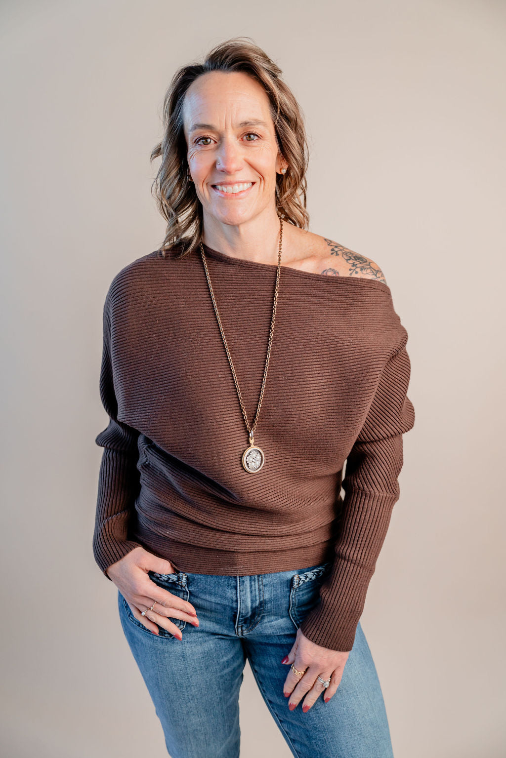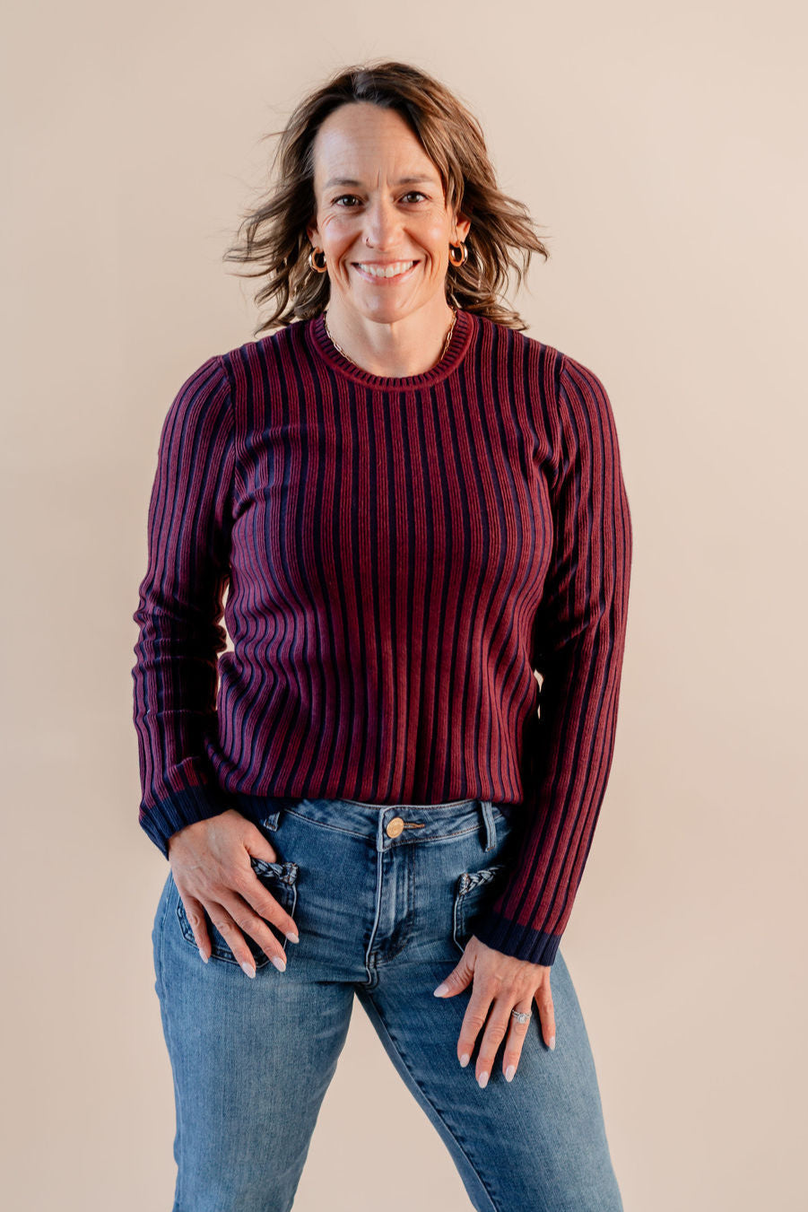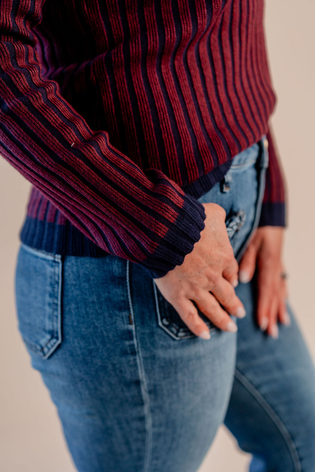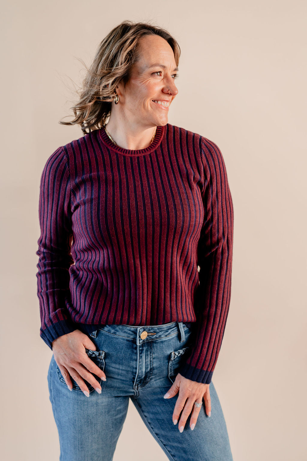 Bubble Hem Knit Top W/ Kangaroo Pocket