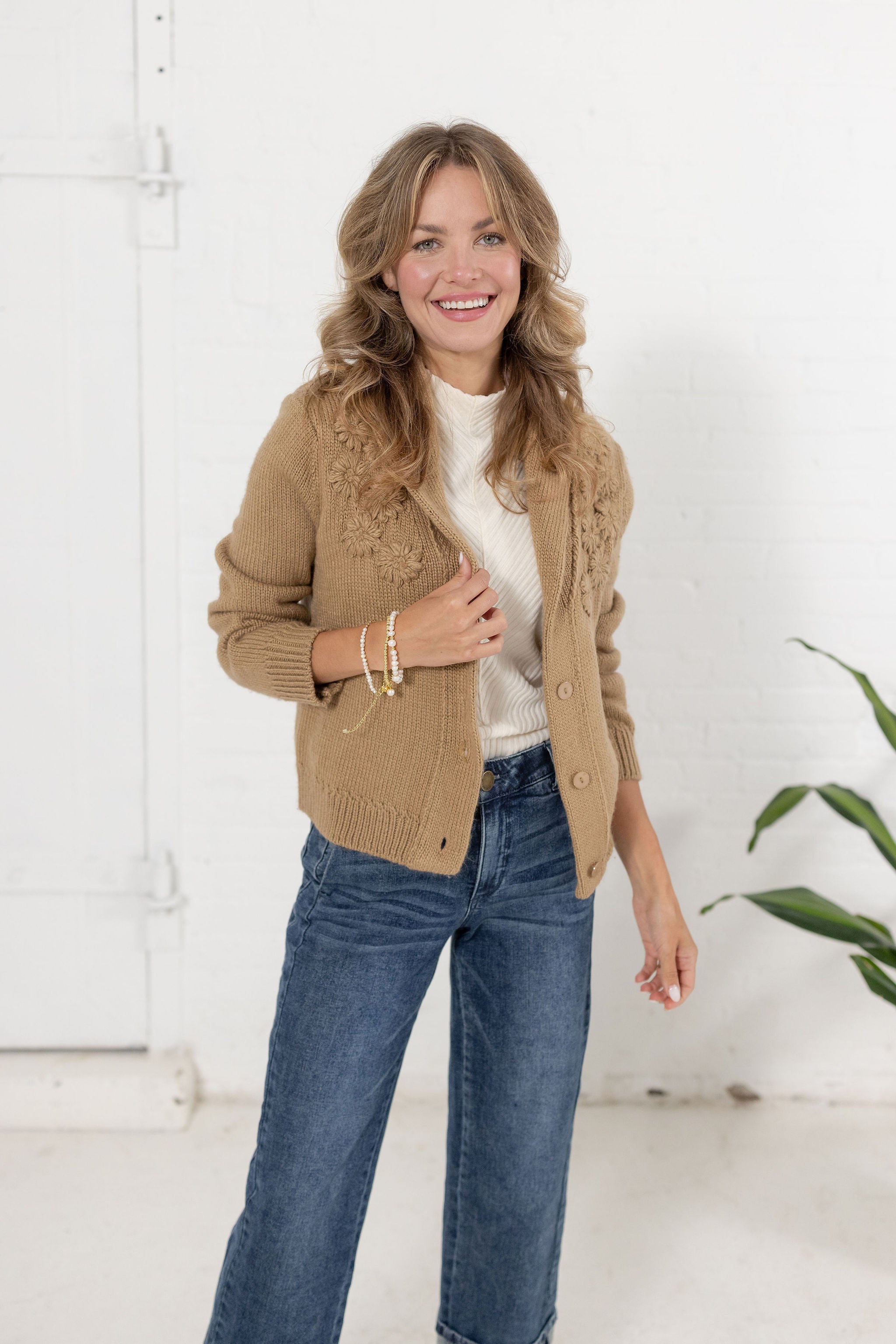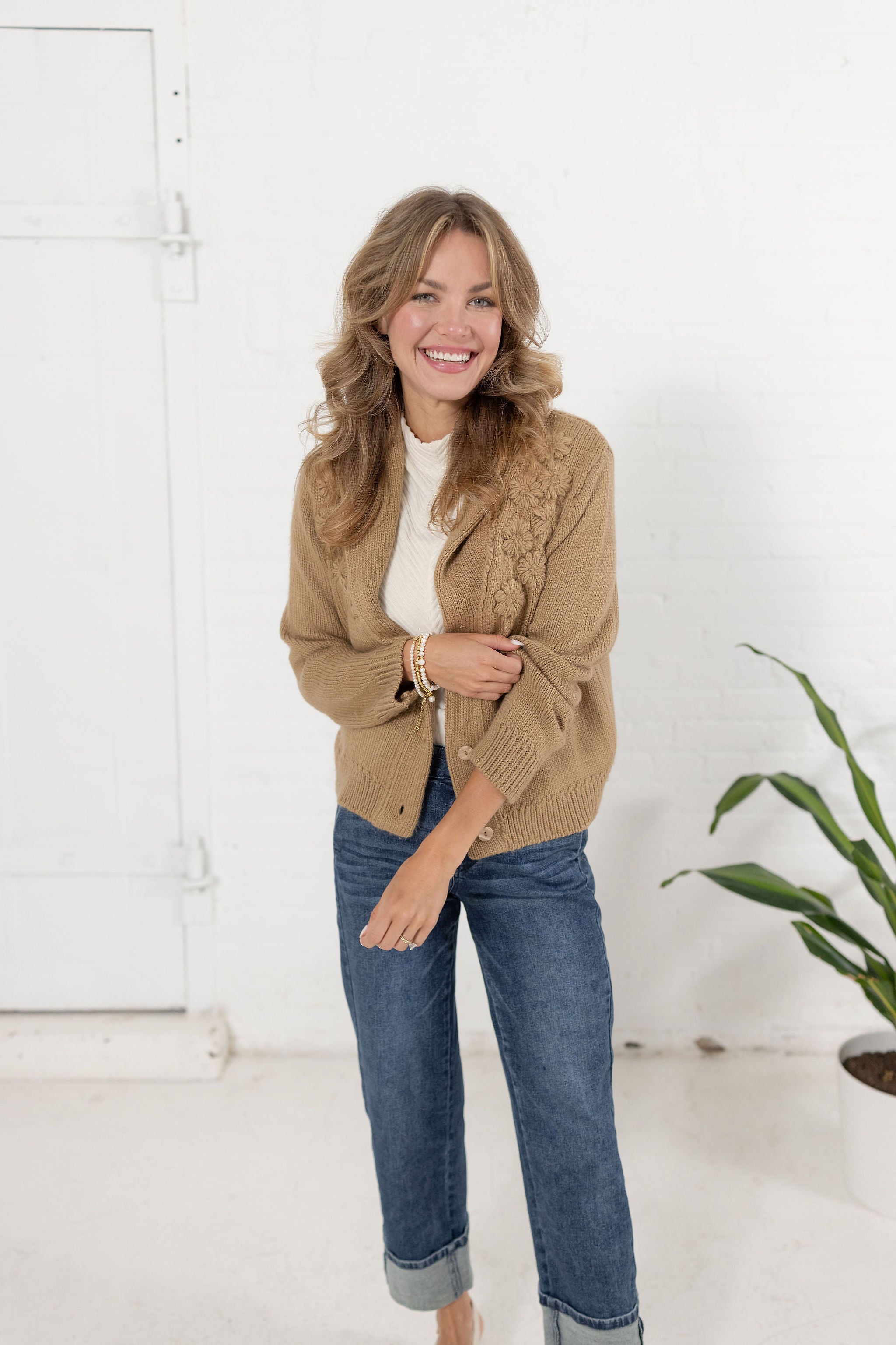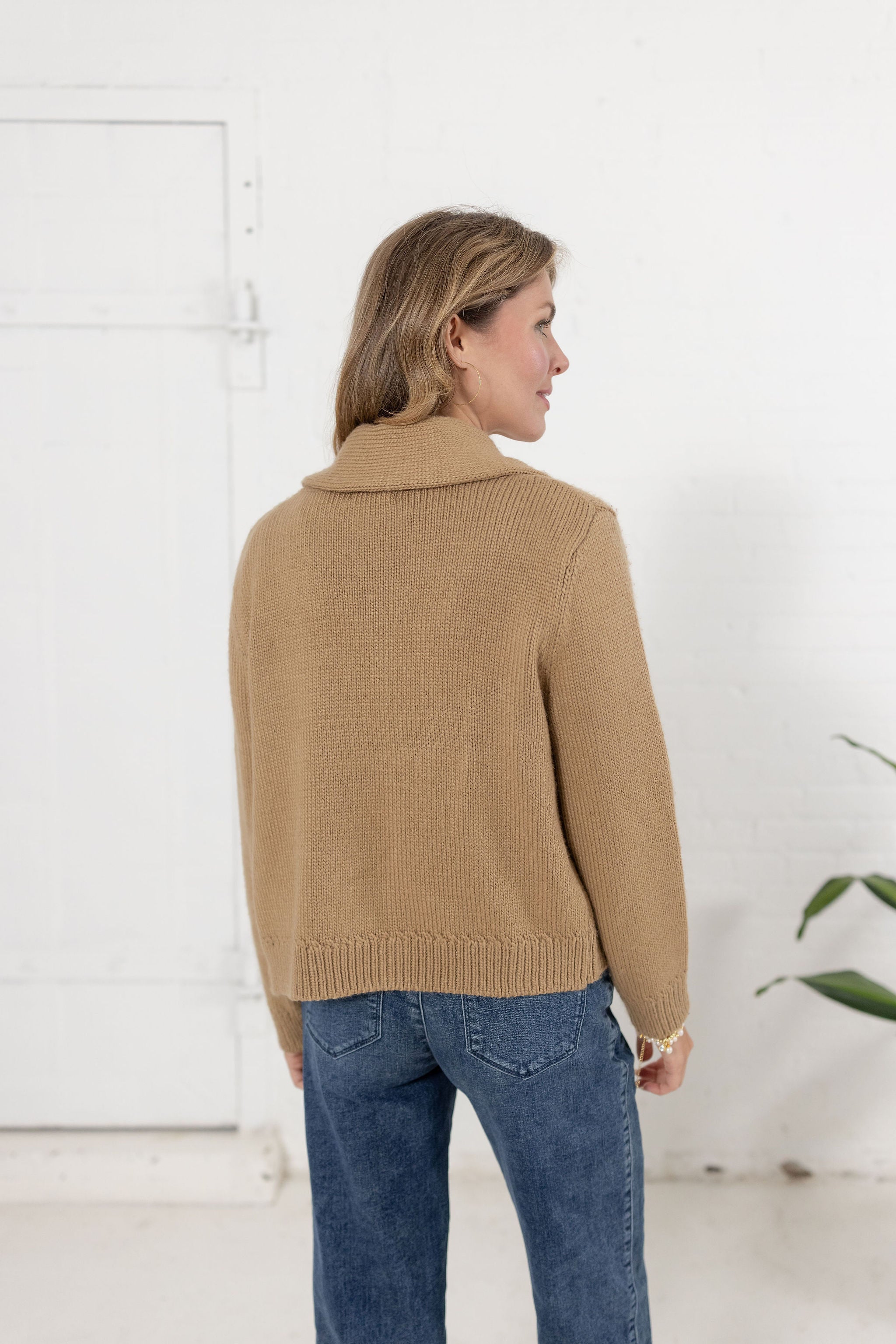 Mock Collared Button Down Long Sleeve Cardigan Sweater