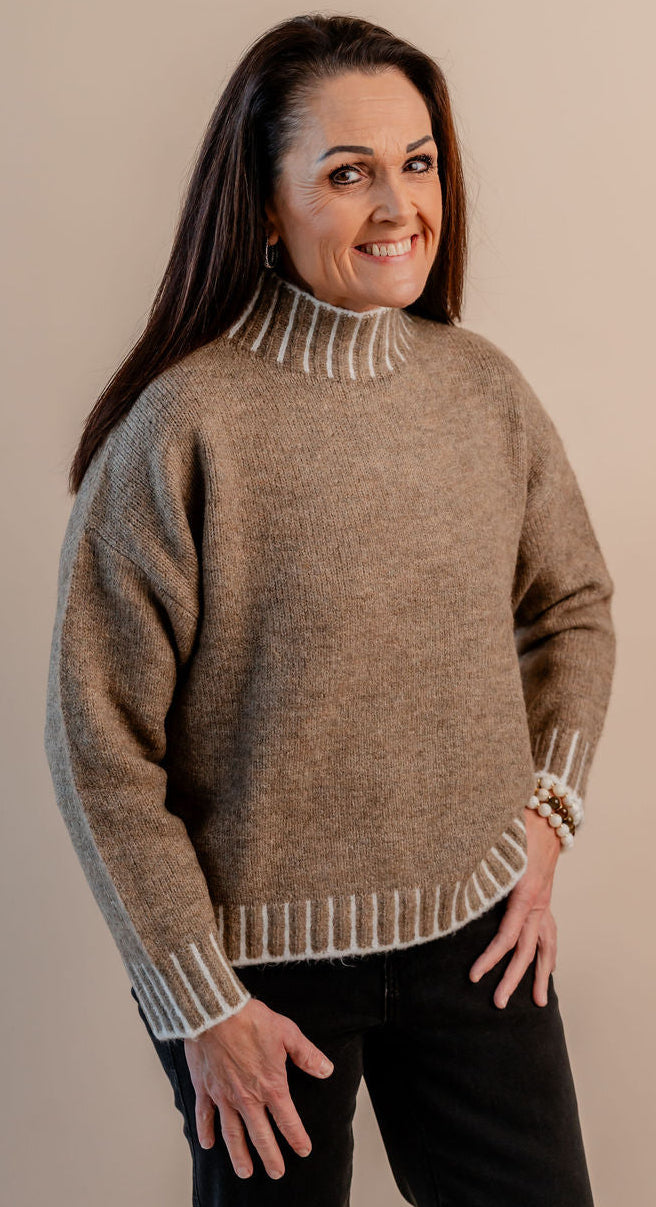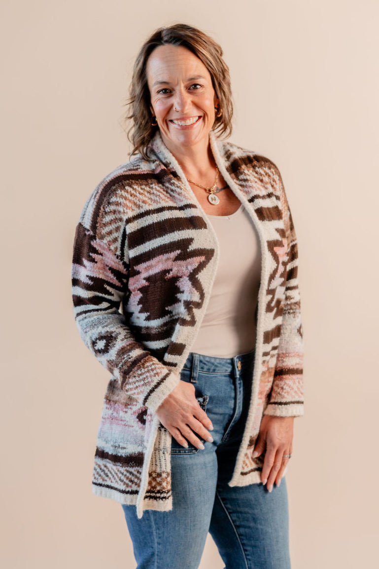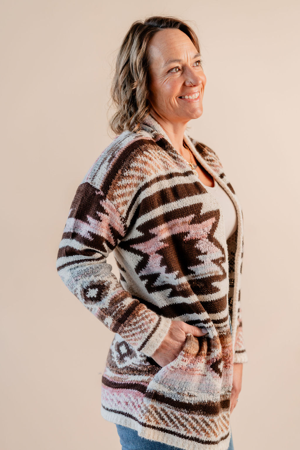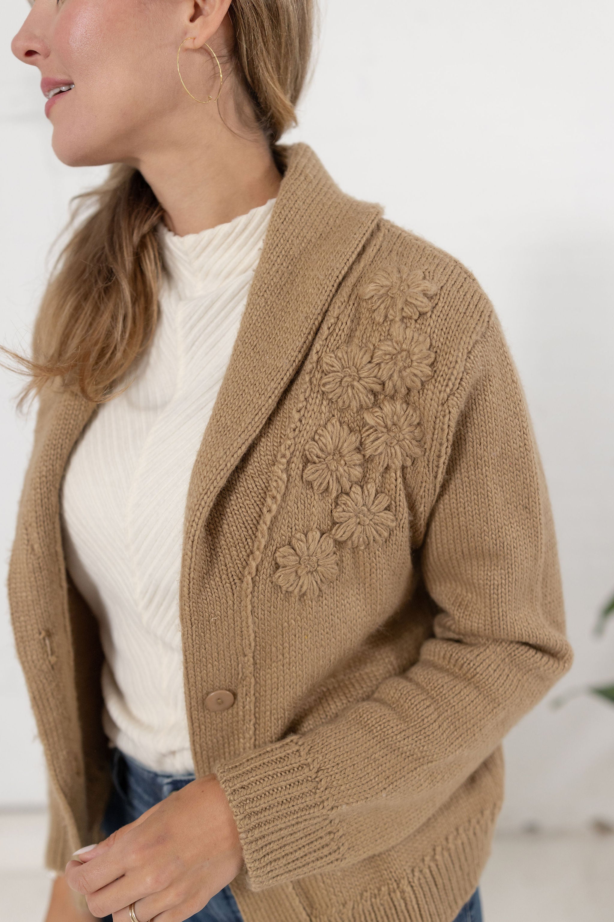 Mock Collared Button Down Long Sleeve Cardigan Sweater