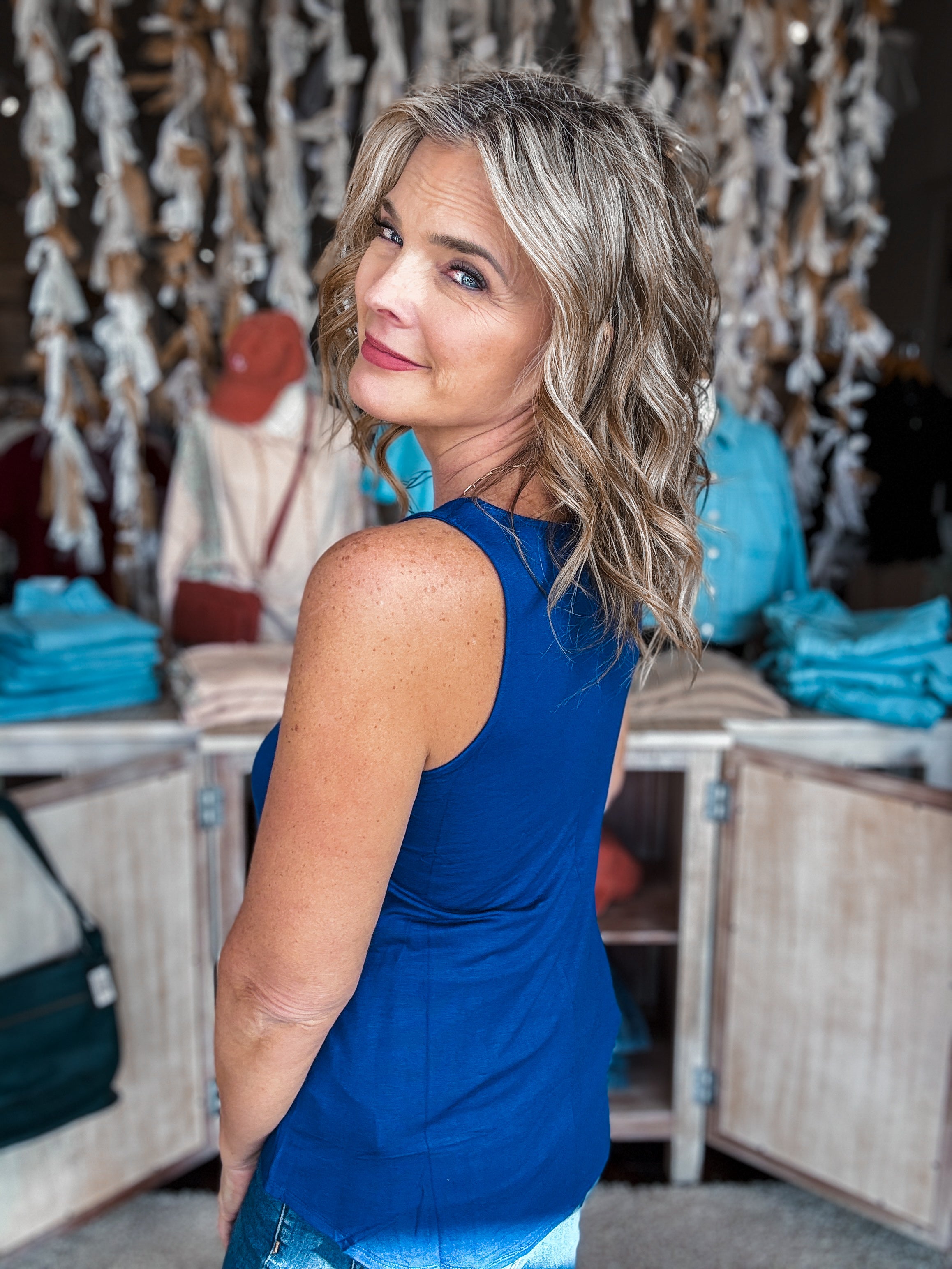 Flowy Hem Rayon Sleeveless Tank Top