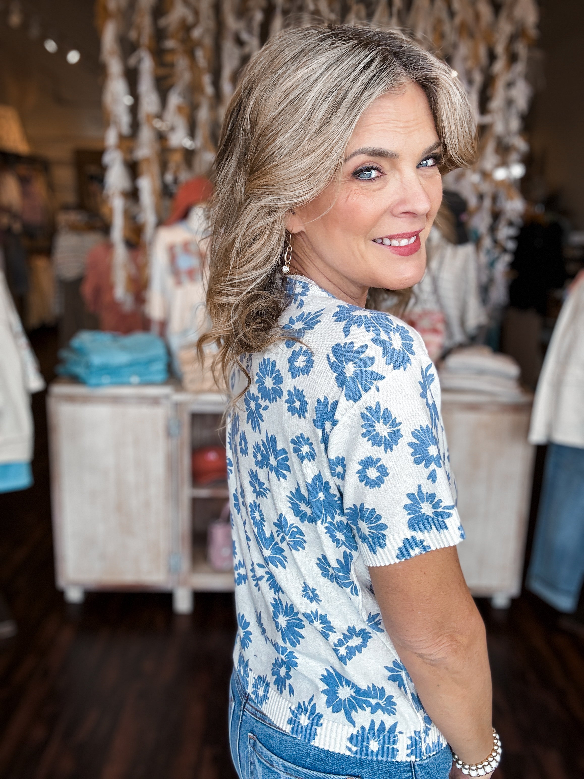 V-Neck Short Sleeve Floral Top