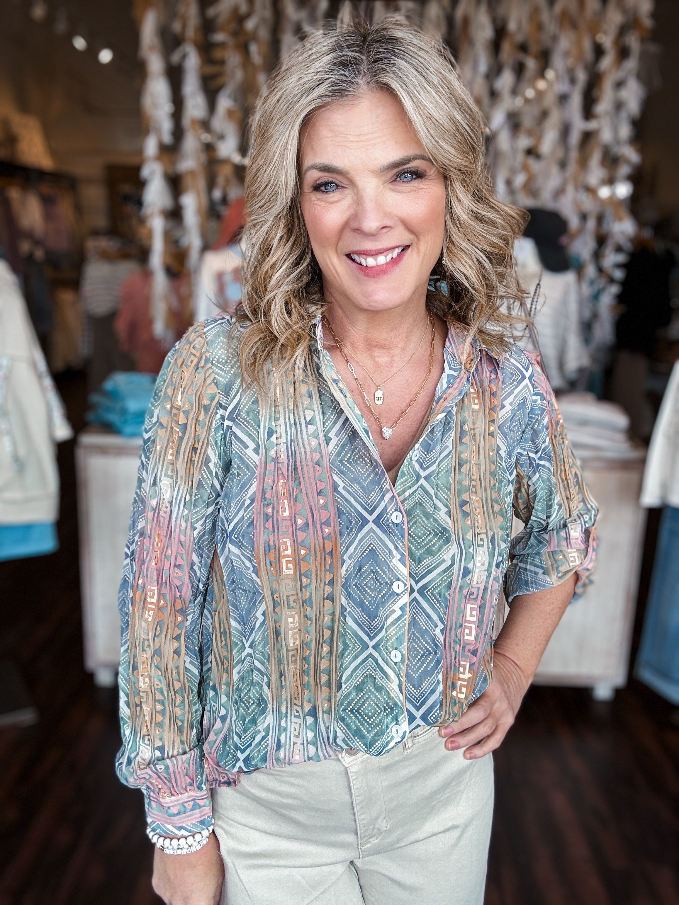 Foiled Printed Crinkle Blouse