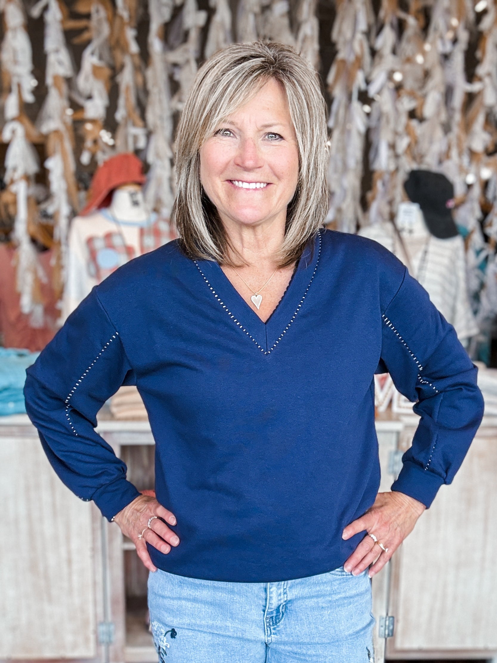 French Terry V-neckline Oversized Sweatshirt