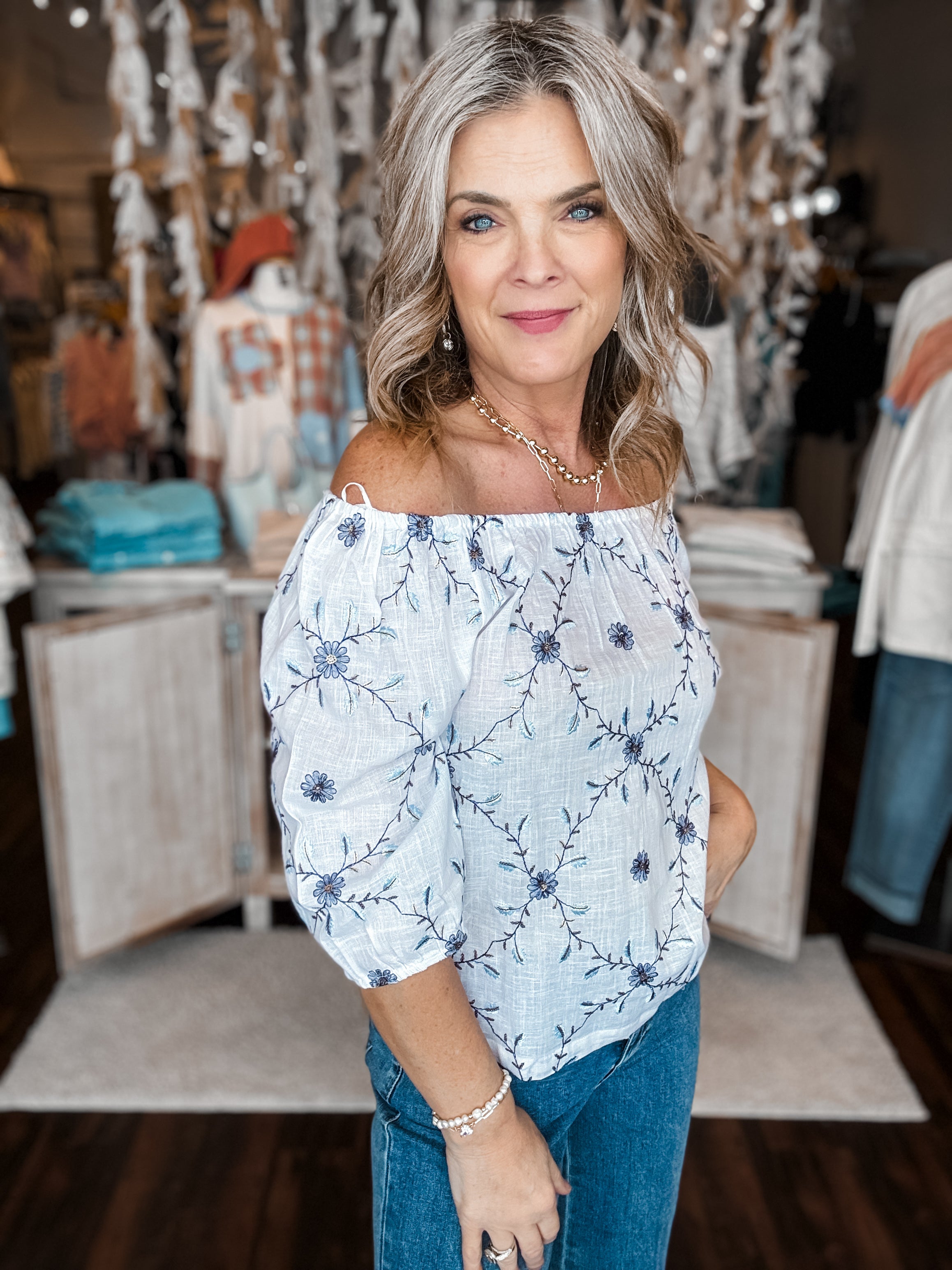 Embroidered Cotton Off The Shoulder Blouse