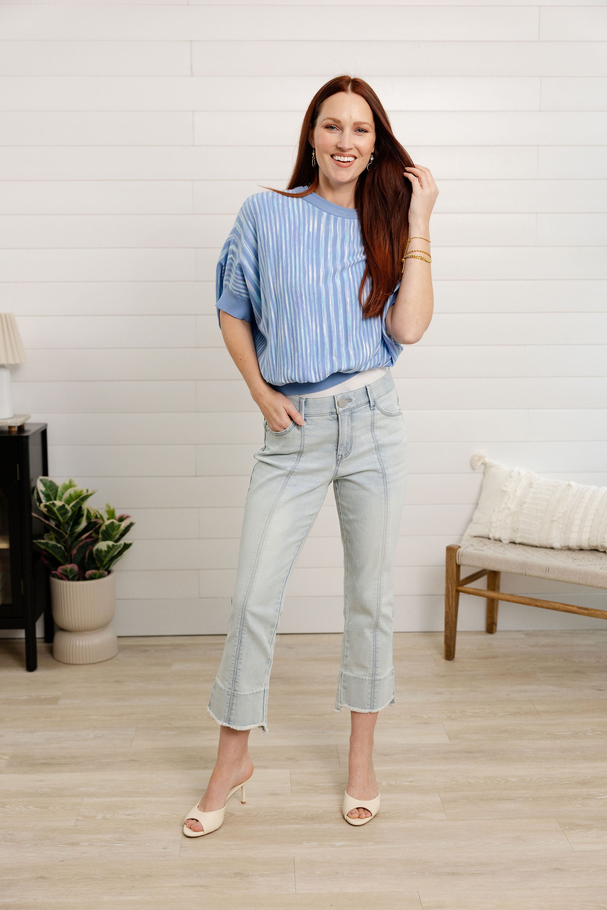 Wide Crew Extended Short Sleeve Multi Yarn Dye Top