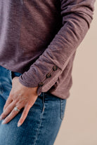 This playful slubbed top features a classic crew neck and charming long sleeves adorned with button details, adding a touch of fun to your everyday look. Its soft, textured fabric keeps you comfortable while the unique sleeves bring a subtle twist to a wardrobe staple. Perfect for mixing and matching with your favorite jeans or skirts!