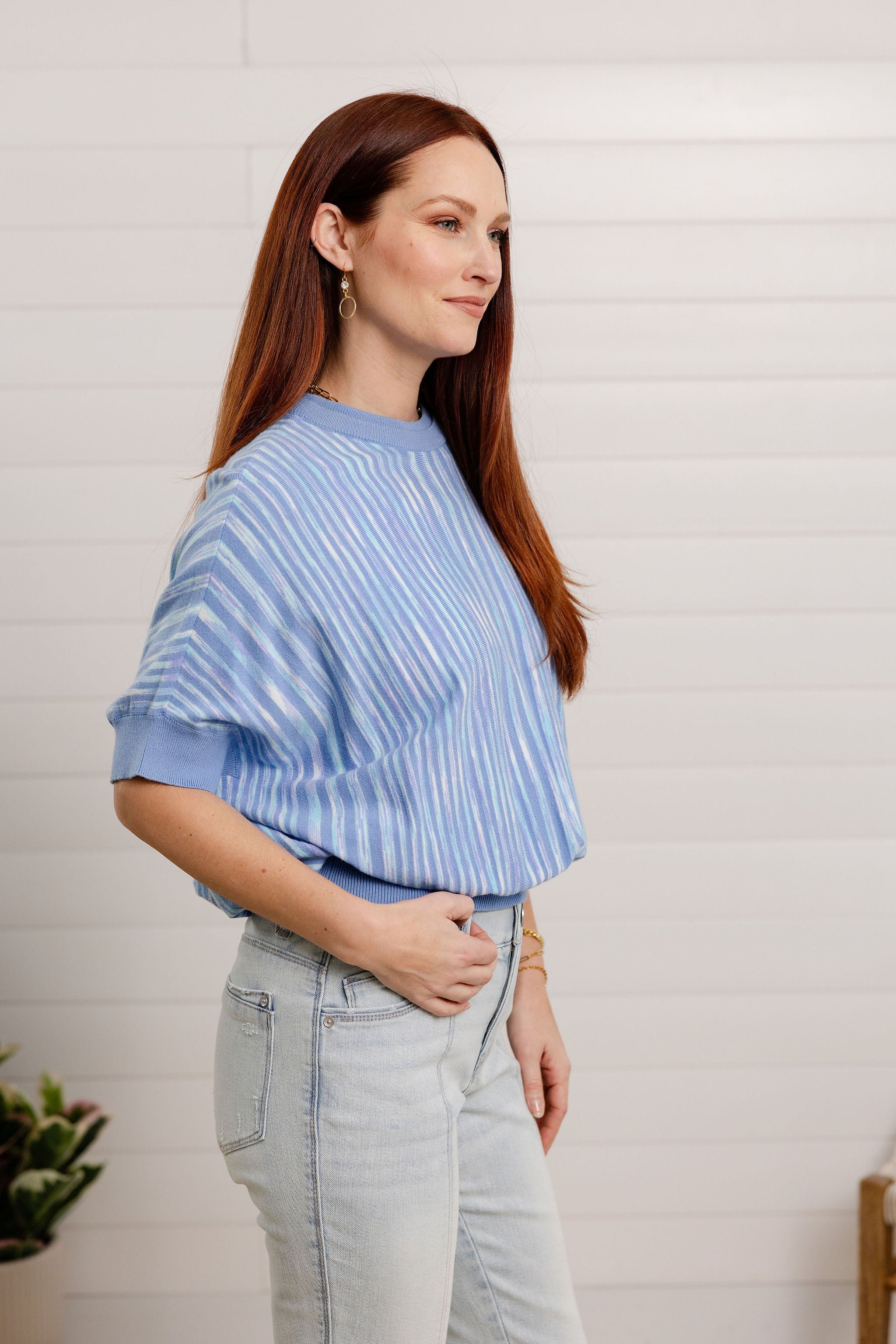 Effortless style meets cozy comfort in this dolman short-sleeve sweater. The two-tone space dye knit creates an eye-catching, modern look that pairs beautifully with everything in your closet. Relaxed dolman sleeves offer a flattering, laid-back silhouette perfect for casual days or dressed-up moments. Lightweight enough for layering, substantial enough to stand alone—this is the sweater that does it all without trying too hard.