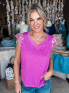 Flutter Sleeve Mixed Media Knit Top Effortless elegance meets playful movement in this mixed media knit top. Delicate flutter sleeves add a touch of whimsy while the thoughtfully blended fabrics create visual interest and comfortable wear. Perfect for layering or wearing solo, this piece transitions seamlessly from casual weekends to elevated everyday moments. The modern silhouette flatters multiple body types, making it a versatile staple that works harder than it looks.