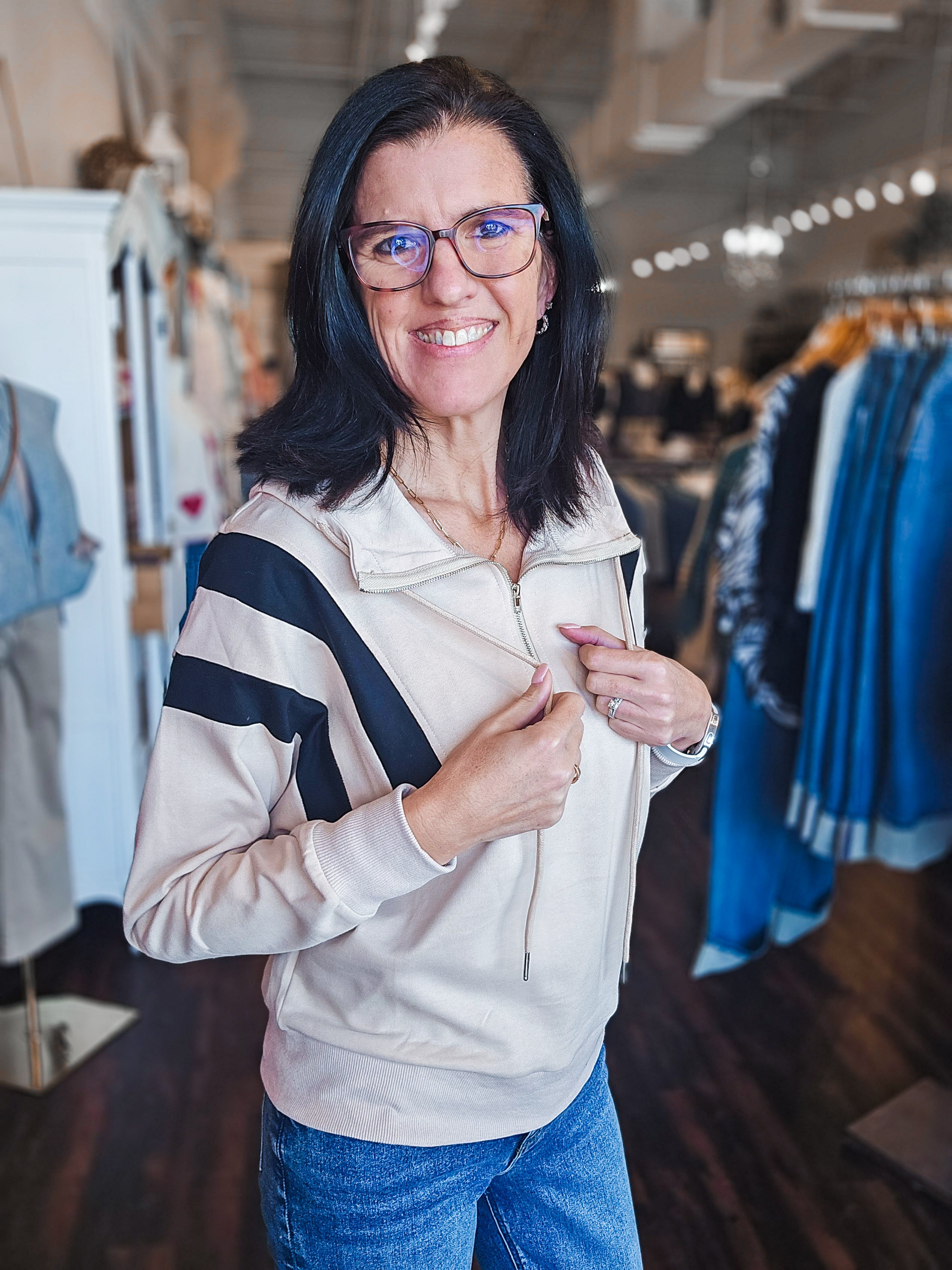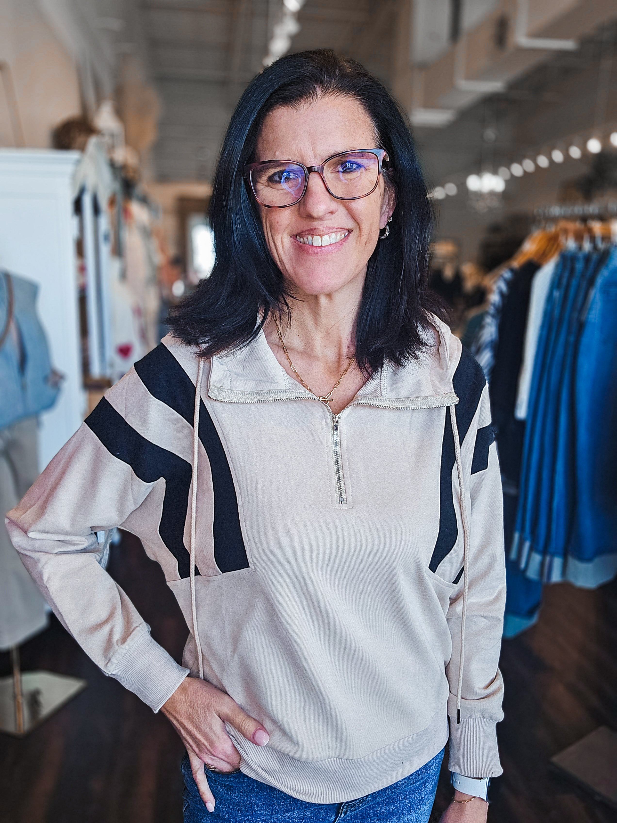 Elevate your casual game with this French Terry Colorblock Half-Zip Hoodie—where comfort meets style in the most effortless way. The soft, breathable fabric keeps you cozy without the bulk, while the bold colorblock design adds visual interest to any outfit. Perfect for layering on chilly days or throwing on solo, the half-zip lets you control your warmth and shows off your personal flair. Whether you're running errands or settling in for the weekend, this hoodie is your new go-to for laid-back sophistication.