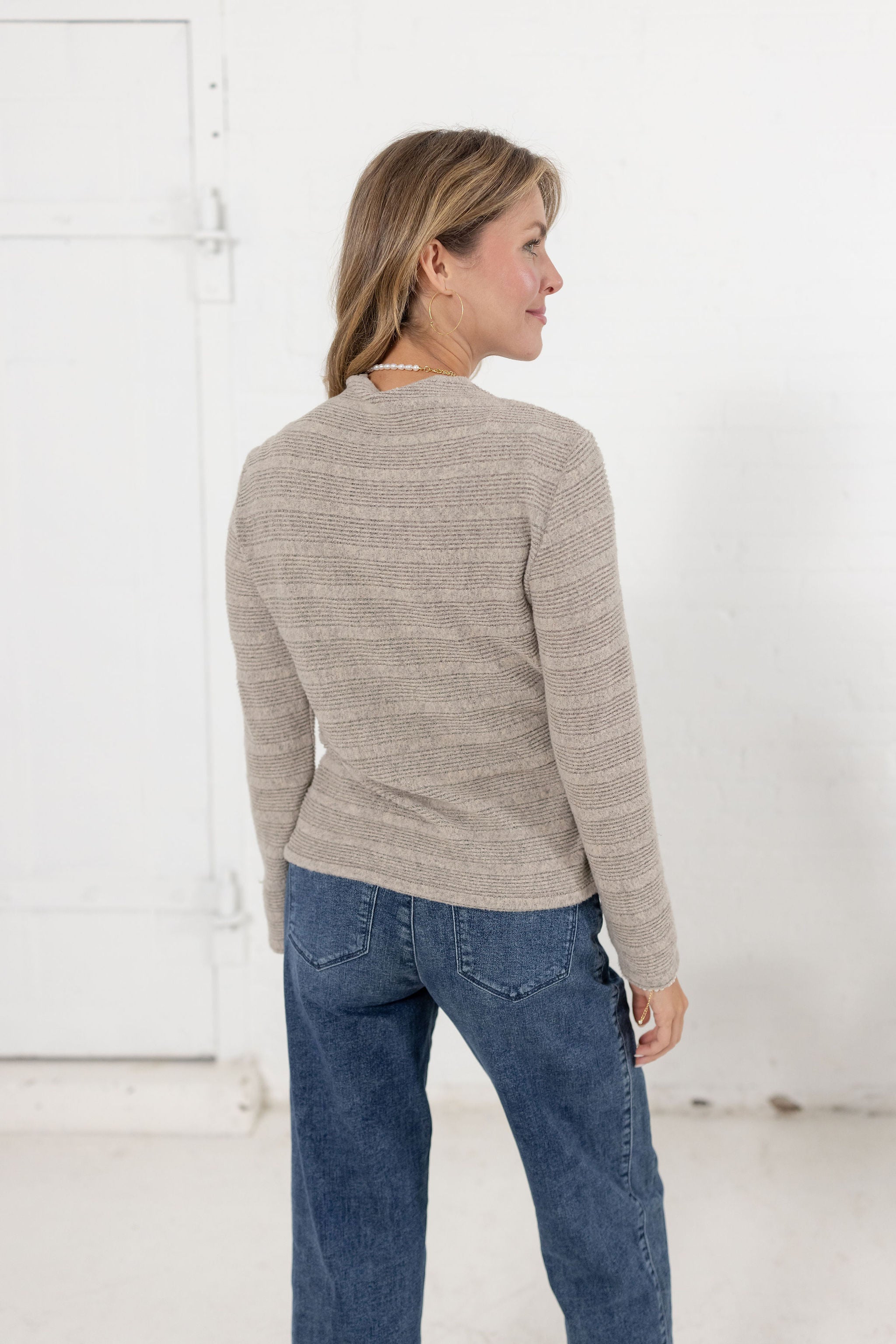 Elevate your everyday look with this playful long sleeve knit top featuring a chic mock neck and an eye-catching asymmetrical design. The side ruching adds a fun twist, creating flattering texture and shape that moves with you. Perfectly cozy yet stylish, it’s your go-to for effortless cool on any day.