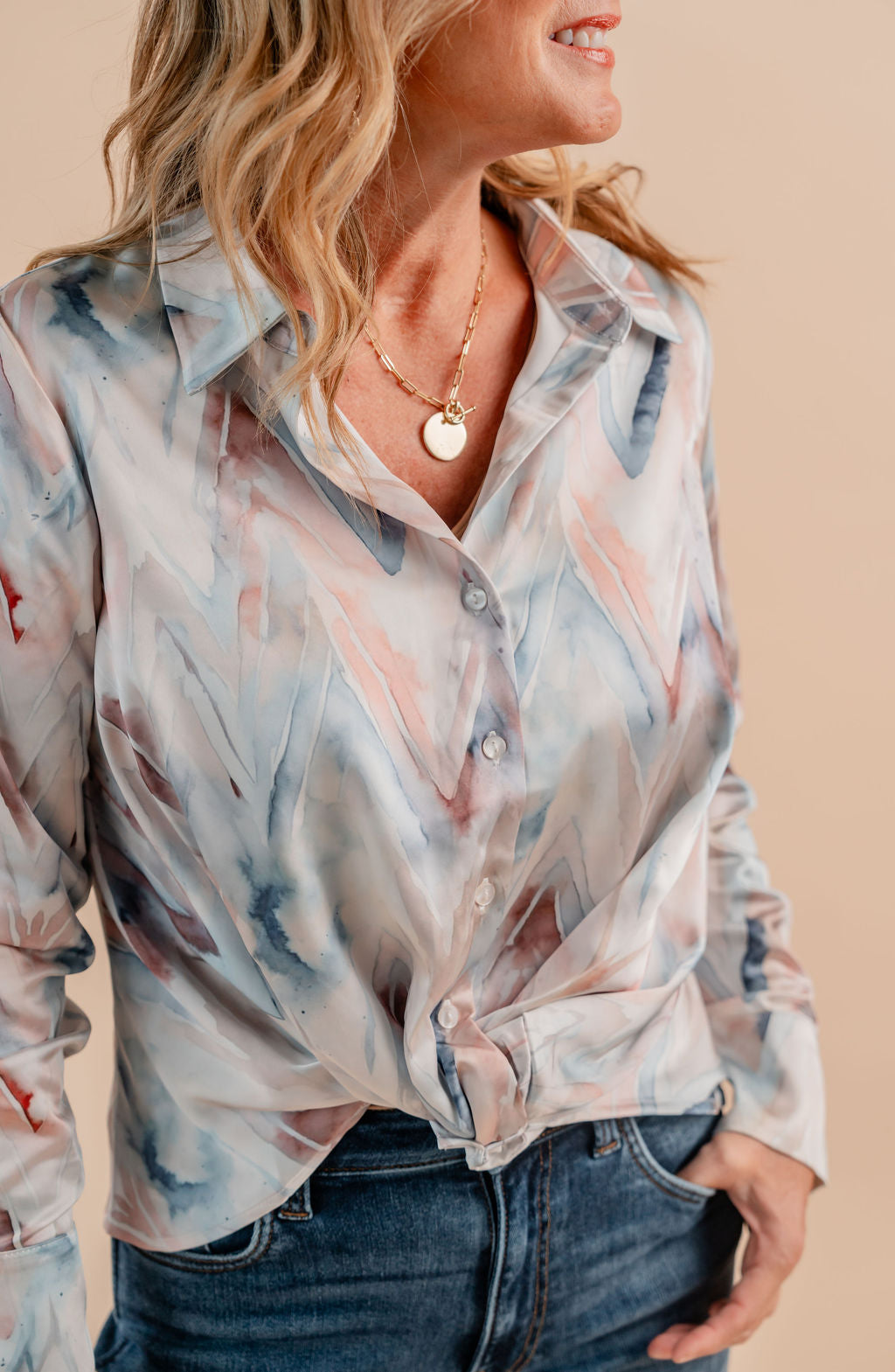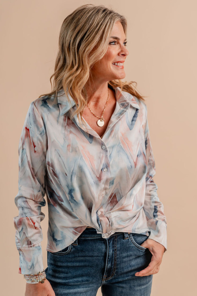 Add a dash of flair to your outfit with this long sleeve shirt featuring a fun twisted front detail and charming buttons down the front. Perfect for turning heads at work or play, its playful design brings a fresh twist to your everyday style while keeping you comfy from morning meetings to evening outings.