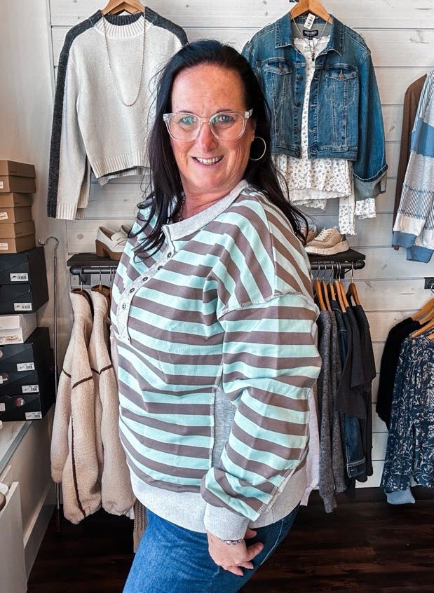 Oversized Striped Half Button Down Casual Knit Top