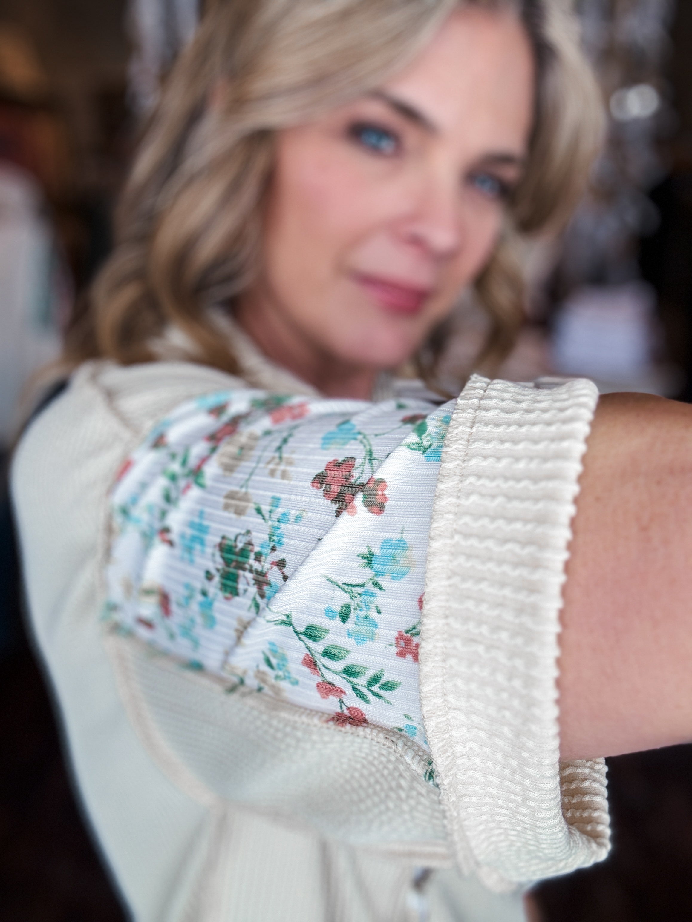 Cozy meets colorful in this charming rib hoodie, where delicate florals dance across soft fabric. The oversized kangaroo pocket is perfect for keeping your hands warm or stashing your essentials—think phone, keys, or that extra snack you're definitely going to need. Ribbed detailing adds a touch of texture and structure, while the relaxed fit keeps things effortlessly comfortable. Layer it over your favorite tee or wear it solo for an easy, put-together vibe that works whether you're running errands or settling in for the day.