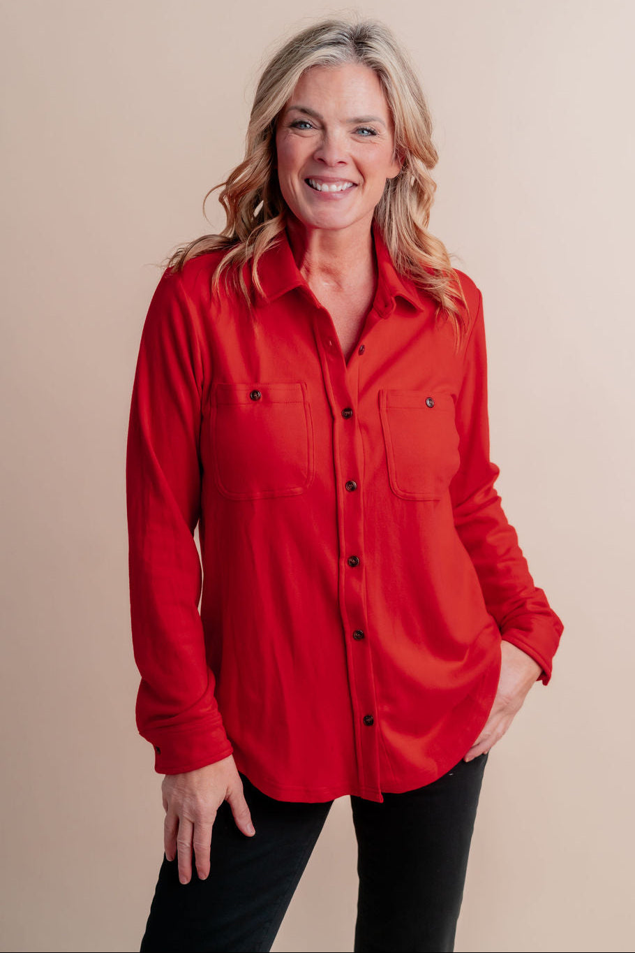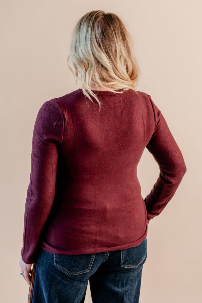 Bubble Hem Knit Top W/ Kangaroo Pocket