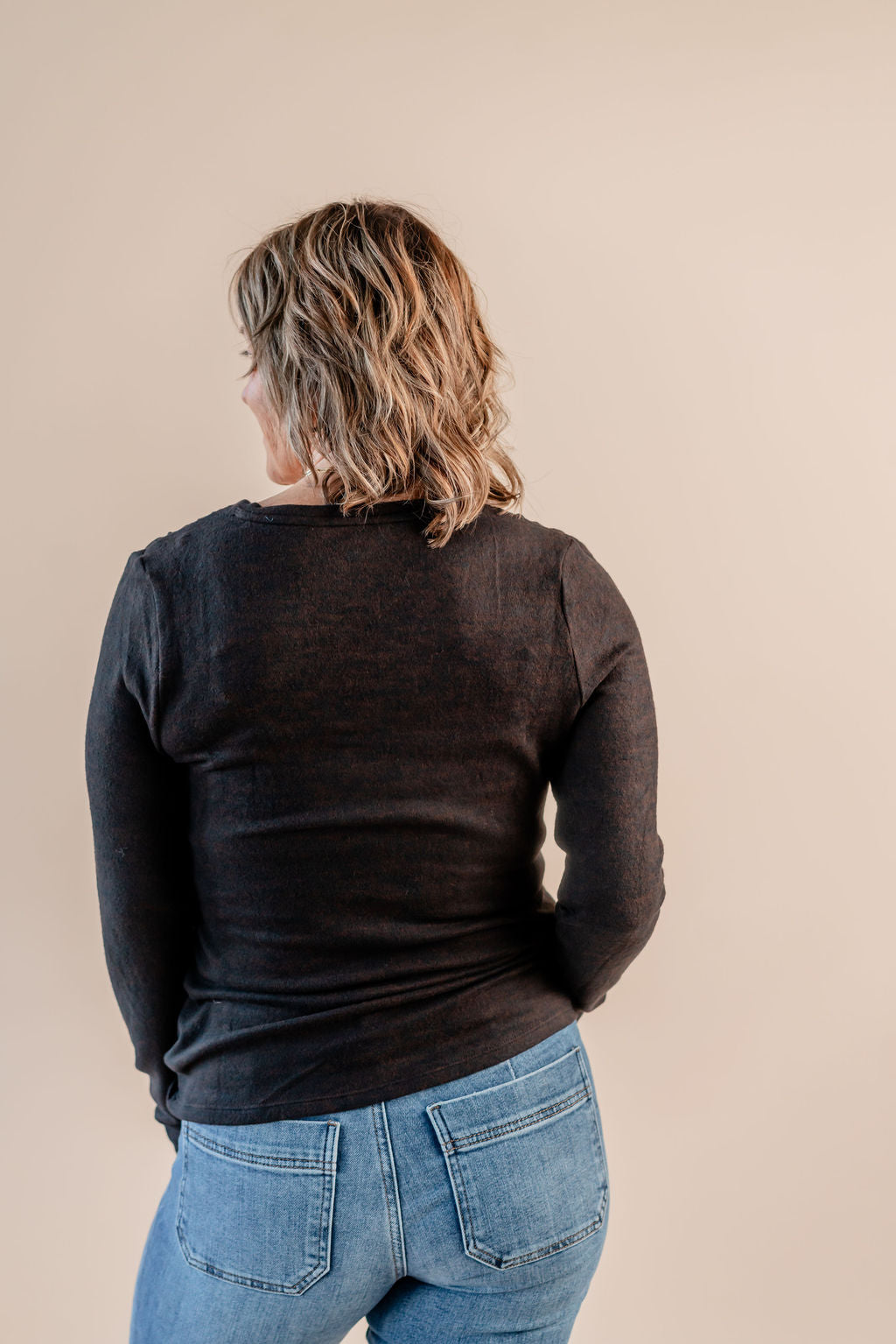 Mock Neck Mixed Media Knit Top W/ Lettuce Edge