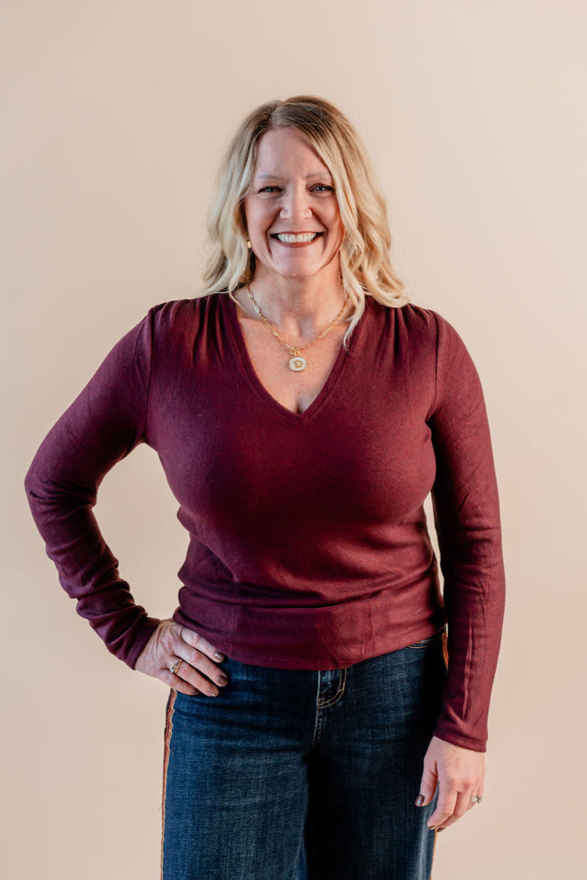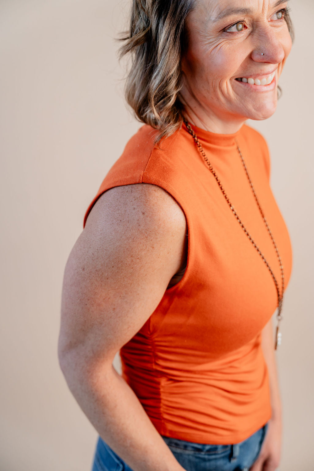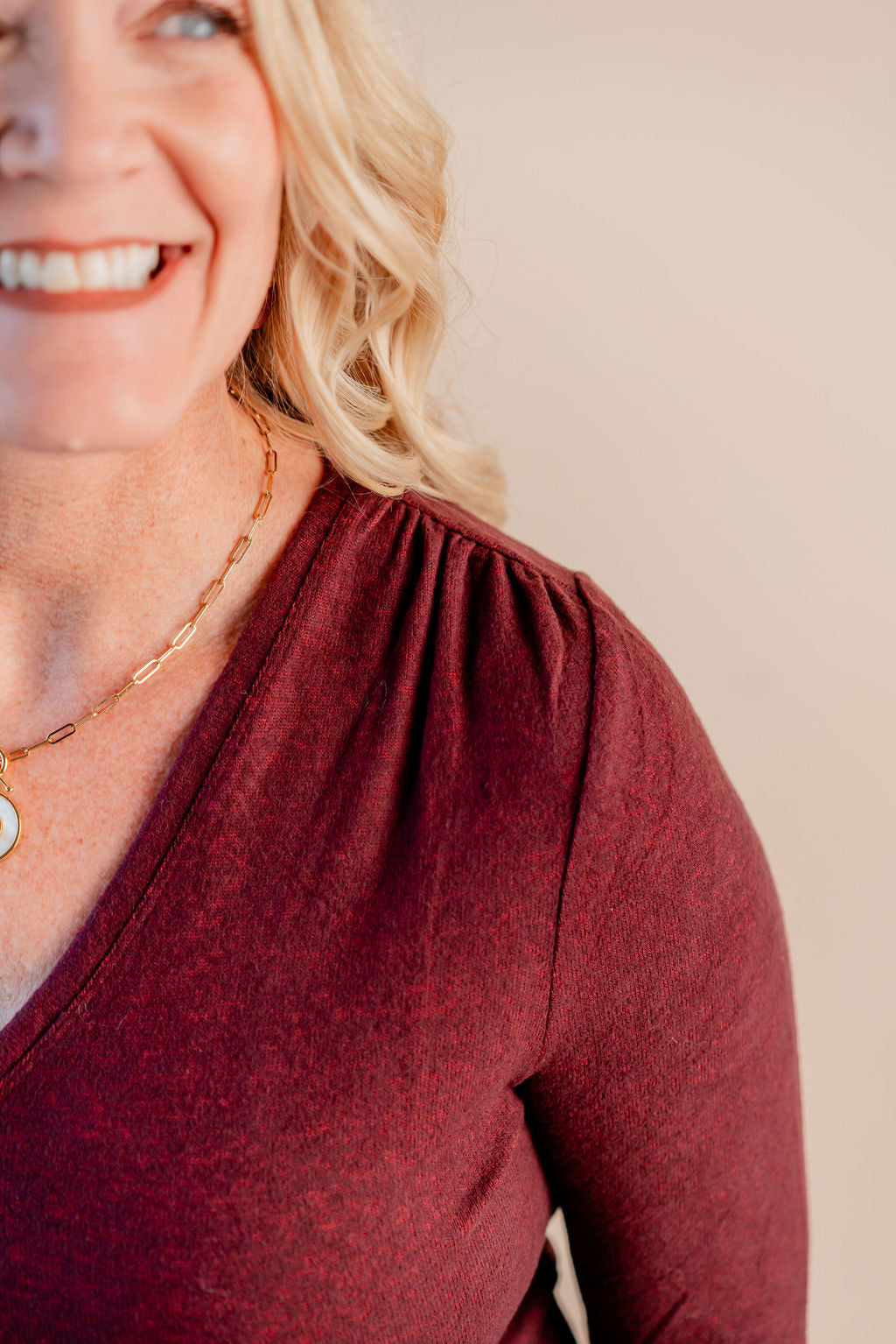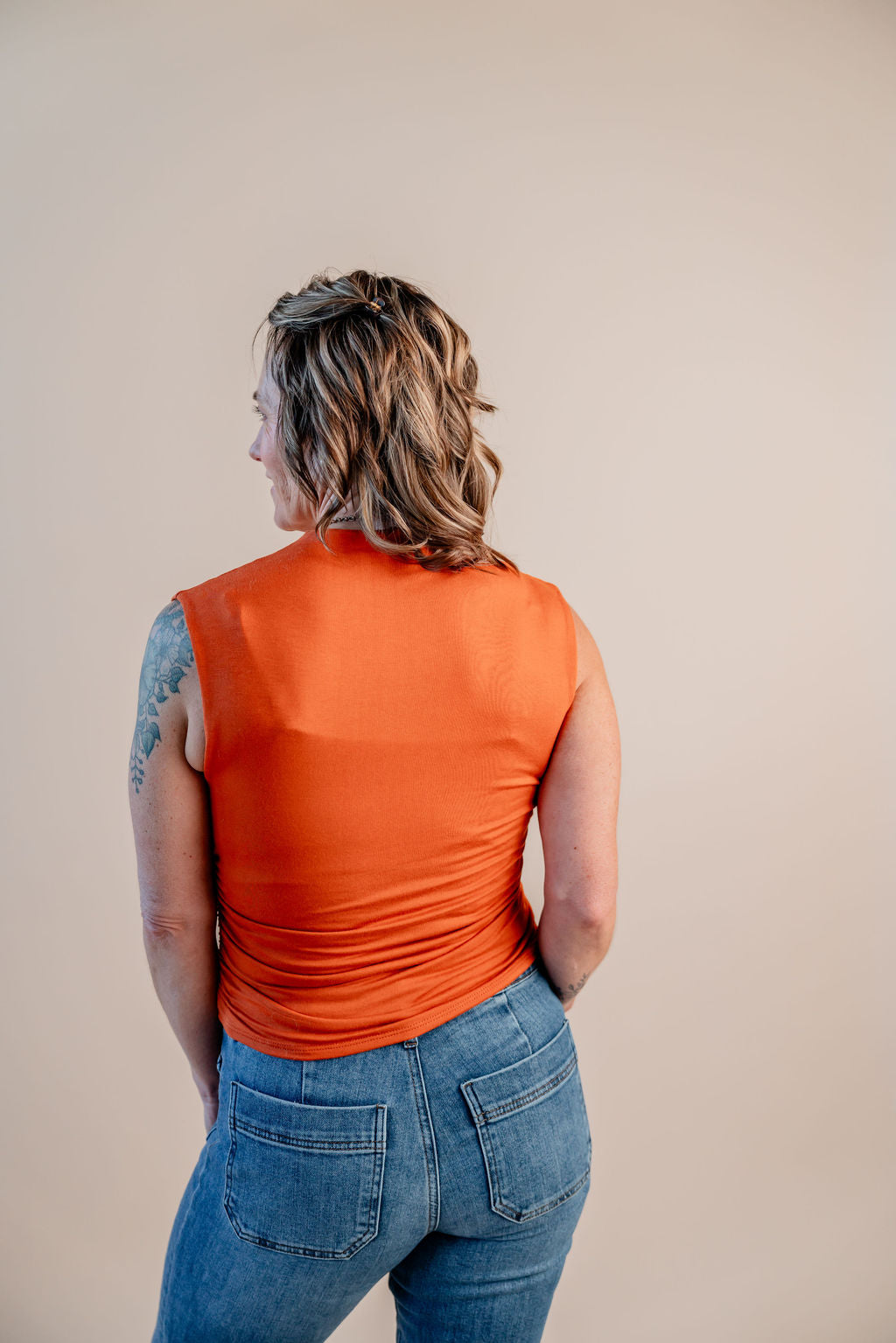 Mock Neck Asymmetrical Side Rouching Knit Top
