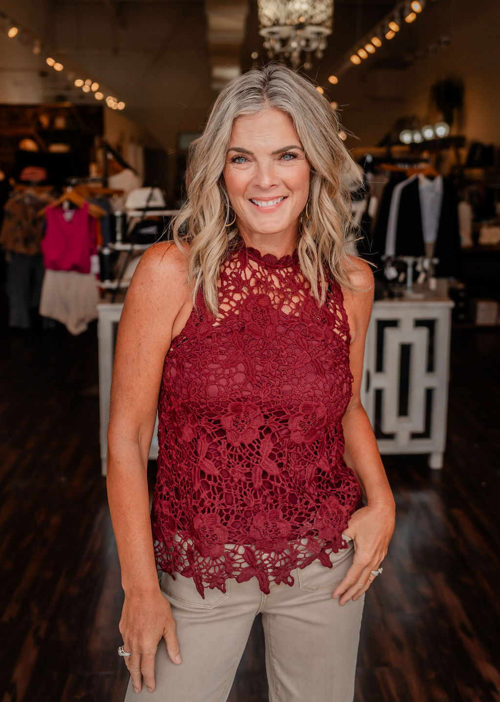Stripe Floral Jacquard Mock Neck Long Sleeve Knit