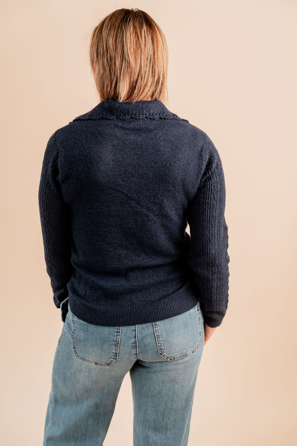 Long Sleeve Crochet Scallop V-Neck Sweater